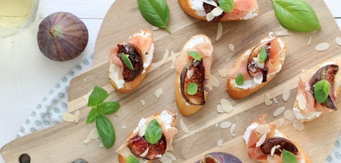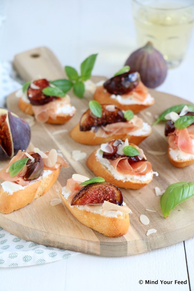 Weekend! Yes, het weekend staat voor de deur! En nog een druk weekend ook. Maar dat maakt niet uit, er staan (bijna!) alleen maar leuke dingen op de planning! En bij het weekend hoort voor mij ook altijd een uitgebreide borrel. Meestal zetten wij op zaterdagmiddag de tafel vol met lekkers, maar regelmatig doen we dat op zondagmiddag nog eens dunnetjes over bij mijn ouders. Omdat ik een stokbroodje met een smeersel ook maar zo gewoon vind, duik ik vaak zelf even de keuken in. Het hoeft niet moeilijk te zijn om zelf wat lekkers op tafel te zetten. Deze crostini met geitenkaas, Serrano ham en balsamico-vijgen staan zo op tafel!
