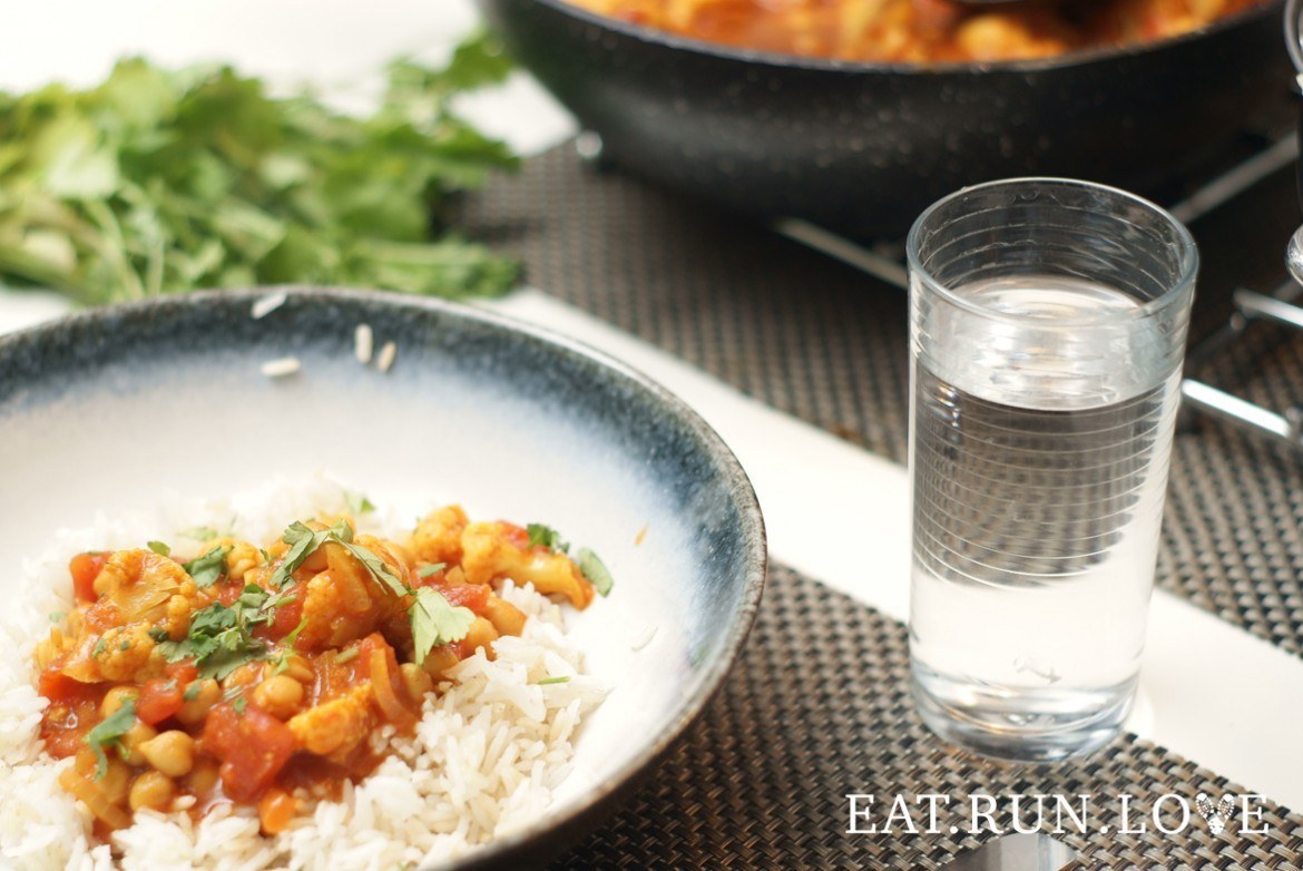 Momenteel bevinden we ons weer een periode waarin we veel oosters geïnspireerde gerechten eten. Zo ook deze curry met bloemkool en kikkererwten. Super makkelijk om te maken want je gooit gewoon alle ingrediënten in een pan en wacht 20 minuten. Dit soort gerechten houd ik van, helemaal als ik een drukke dag heb gehad. Niet te veel nadenken en toch lekker eten.