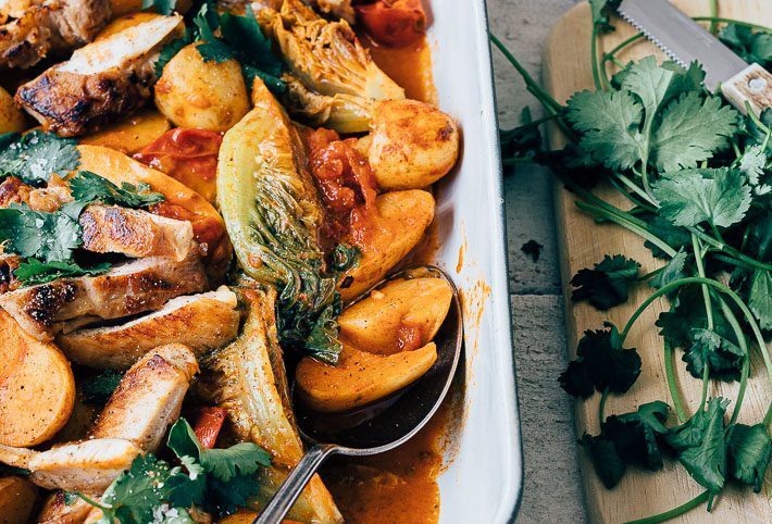 Wanneer je voor een vegetarische variant zou willen gaan kun je natuurlijk de kip weglaten. Omdat je de kip apart in een koekenpan bakt is dit gerecht perfect wanneer niet iedereen aan tafel vegetarisch zou willen eten. Ik denk dat er best wat situaties zijn waarbij je blij bent met een wel of geen vegetarisch recept. Of het nou je dochter of zoon is die geen vlees meer wilt eten, jij of je partner juist wel of er komen vrienden op bezoek die vegetarisch zijn. Wanneer je de kip weglaat maak je overigens ook maar 1 pan vies. Ook leuk zo weinig afwas. Trouwens het gerecht is zelfs vegan wanneer je de kip weglaat. Wanneer je echt voor vegan of vegetarisch wilt gaan bekijk dan even goed de ingrediƫnten op de verpakking van de Thaise currypasta.