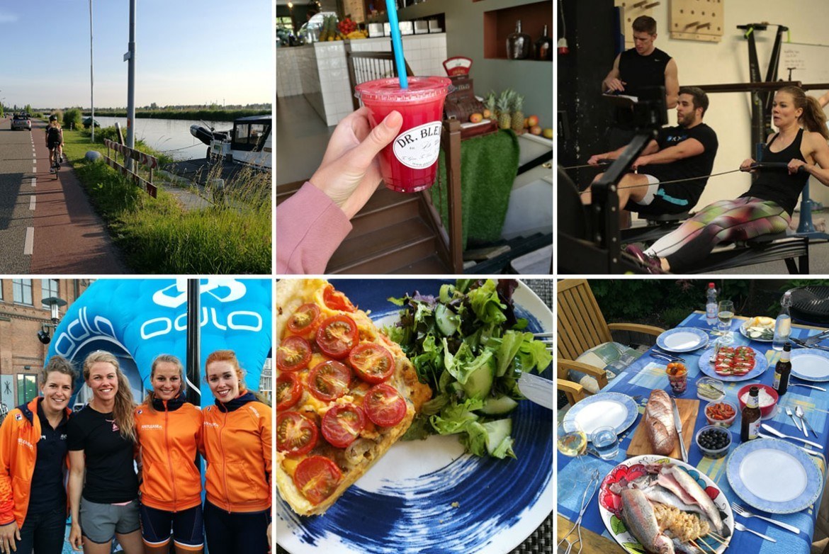 Ik ben begonnen met mijn nieuwe trainingsschema en wil daarom 2x per week op de racefiets zitten, vind ik overigens ook super leuk. Tot nu toe fietste ik eigenlijk altijd ’s avonds of in het weekend overdag, maar deze week kwam het zo uit dat ik alleen ’s ochtends zou kunnen. Ik had dus geen idee of het zou bevallen, maar woensdag zette ik half 7 de wekker om op de fiets te stappen. Mijn vriend besloot mee te gaan en samen fietsten we 22km. En het was heerlijk! De zon was al op, het beloofde een mooie dag te worden en het was nog lekker rustig op straat. Een aanrader. Voor het fietsen at ik een plakje zelfgemaakte ontbijtkoek en na het fietsen overnight oats met pindakaas en blauwe bessen. Ook maak ik een groene smoothie die ik meeneem naar kantoor; spinazie met banaan, mango en passievrucht. De hele dag ben ik op kantoor aan het werk, niks spannends! Ik lunch met twee boterhammen met kipfilet en de catering heeft een hele lekkere aardappel-ei salade gemaakt. Meestal hebben dit soort salades heel veel mayonaise, maar dat was nu niet zo.