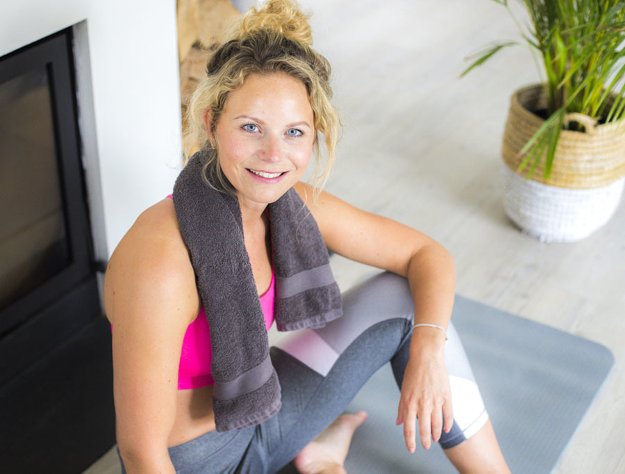 Je benen recht naar achteren strekken en zorgen dat je voeten op heupbreedte geplaatst worden.