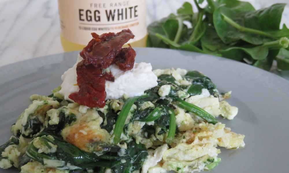 Goed, het idee was dus om een lekkere omelet met spinazie, ricotta en zontomaat te maken. De spinazie zat in de pan, ik goot het ei er overheen en... één grote mess up. Uit pure wanhoop ben ik toen alles maar gaan roeren en ik heb ik het gerecht zo goed als ik kon afgemaakt. Op het bordje leggen, vork erin en proeven maar. He, dat is lekker! Dan maken we er toch gewoon een roerei recept van, is zelfs nóg makkelijker dan een omelet. Ohja, deze lunch is naast lekker ook nog eens heel gezond. En ik kan me voorstellen dat het ook fijn is als lichte maaltijd, als je daarna nog wilt sporten bijvoorbeeld.