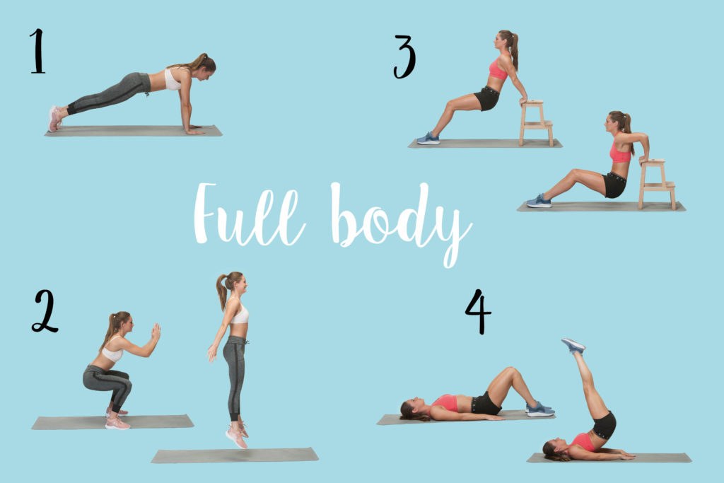 Eenmaal warm? Dan zijn we klaar voor onderstaande oefeningen van de full body workout!