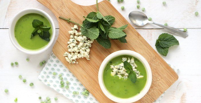 Ik ben dol op groenten en verwerk ze dan ook het liefst in elk gerecht. Mij maak je elk seizoen weer blij met de nieuwe groenten die dan weer te koop zijn en ik kan dan ook niet wachten om daar wat lekkers mee te maken. Zo zijn bijvoorbeeld verse doperwten vanaf half mei weer volop verkrijgbaar, super lekker zacht en met een lichte zoete smaak, en ze geven echt zo'n mooie kleur aan een gerecht. Toen ik laatst door Castello werd gevraagd om een recept te bedenken waar ik hun Danablu crumbled in kon gebruiken, wist ik al direct dat ik aan de slag wilde met doperwten. Het is deze koude doperwtensoep met munt geworden, die op een gezellig etentje met vrienden niet zou misstaan.