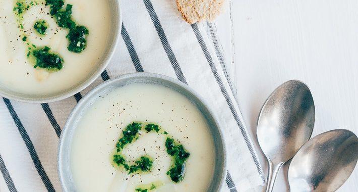 Ik serveer mijn aspergesoep deze keer met peterselie olie. Dat geeft een lekkere kick in deze soep. Eigenlijk is deze peterselie olie overal lekker bij. Je kan het op een broodje smeren, in een salade verwerken of eten met een stukje vis of kip. Ik maakte deze aspergesoep tijdens de laatste kookdag. Toevallig staat er vandaag weer eentje gepland. Annika en ik koken op zo’n dag ongeveer 8 recepten. Ik kook alles en Annika zet alles op de foto. Dat werkt echt heel fijn. Voordat Annika onderdeel van Uit Pauline’s keuken was, kookte ik iedere dag wat anders en zette ik dat ook meteen op de foto. Dat was eigenlijk best onhandig. Mijn huis was altijd een chaos en we aten iedere dag koud eten haha. Nee dan hebben we het nu beter geregeld.