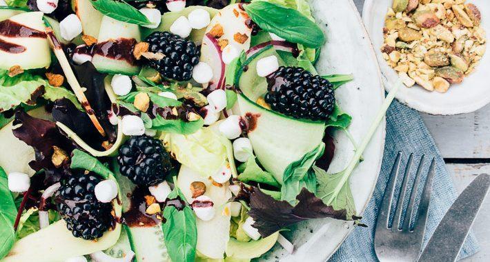 Ik was uitgenodigd voor Saladay, het jaarlijkse salade event van Bettine geitenkaas. Geitenkaas is namelijk heel erg lekker in een salade. Dat weten we inmiddels allemaal, want bijna overal staat de salade geitenkaas met honing op de kaart. Maar je kan er veel meer mee doen. En dat is precies wat ik en nog een handvol andere bloggers (kijk even op hashtag #saladay op Instagram) hebben gedaan. We moesten er even voor rijden want de Bettinehoeve staat in Etten-Leur, maar eenmaal daar had ik meteen het vakantiegevoel te pakken. Op de hoeve zelf worden alle geitenkaasjes verpakt, gerijpt en worden de specialiteiten gemaakt zoals de geitenkaasplakjes omwikkeld met spek. Dit gebeurt trouwens gewoon met de hand. Erg leuk om een kijkje achter de schermen te krijgen.