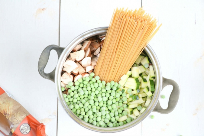 Dit pasta gerecht is binnen 20 minuten klaar inclusief voorbereidingstijd. De truc is om het water alvast te koken. Ondertussen snijd je de groente en kunnen bijna alle ingrediƫnten in de pan. De spaghetti en de groente zijn tegelijkertijd gaar. Vervolgens roer je er nog een paar smaakmakers door en klaar is de maaltijd.