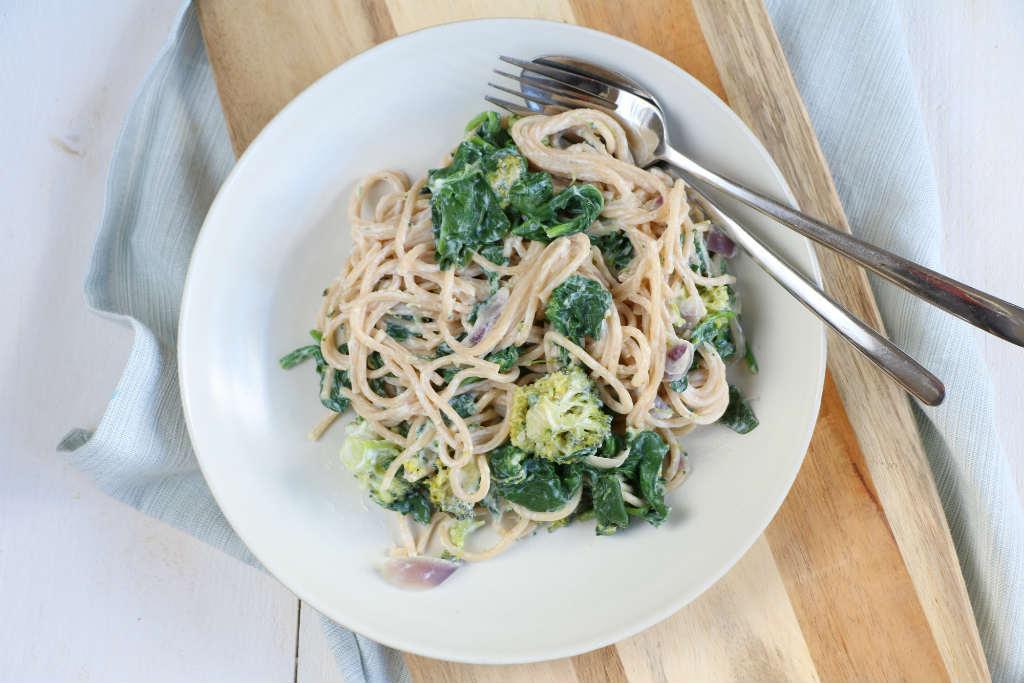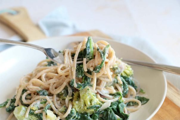 Deze eenpans spaghetti is een makkelijke vegetarische maaltijd voor doordeweeks. Juist op die momenten dat je weinig tijd hebt. Alles kan in één grote pan en staat binnen 20 minuten op tafel. Ondertussen zijn er ook nog 3 eens soorten groente in verstopt. Een prima maaltijd.
