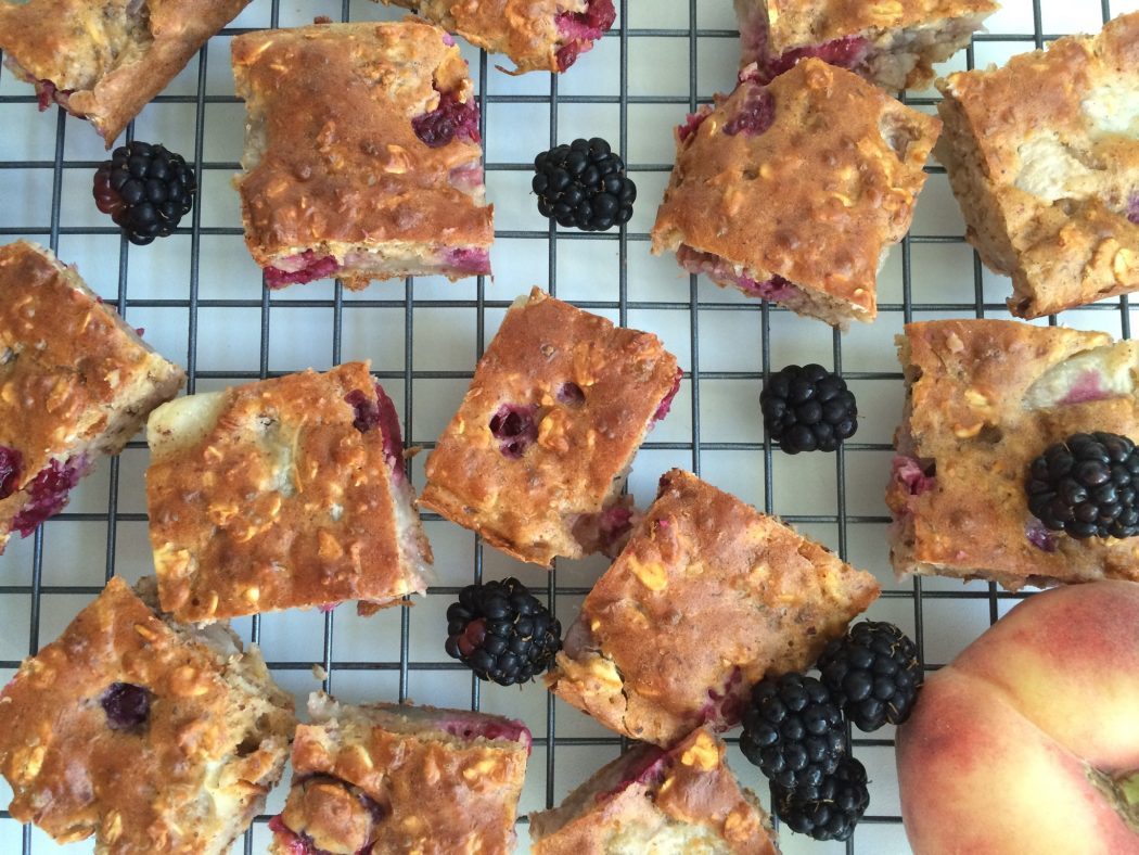 Ik ben dol op de zoete perziken die nu heel erg veel in de winkels liggen en ik had een overschot aan bramen die bij ons aan de struiken groeien. Dat in combinatie met een luchtige yoghurtcake is echt een toppertje! Voor ontbijt of tussendoor en ook heerlijk rond een uur of 4 bij een kop koffie. Hij is ook nog eens heel makkelijk te maken. En voor de kinderen mee naar school als lunch is ook echt een aanrader!