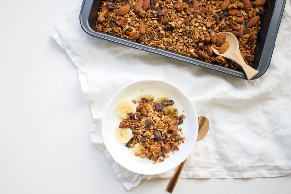 Zelf granola maken is niet alleen heel lekker, maar ook een stuk gezonder dan kant en klaar varianten uit de supermarkt. Daarnaast heb je makkelijk en snel een voorraad gemaakt voor de hele week, scheelt weer wat tijd in de ochtend.