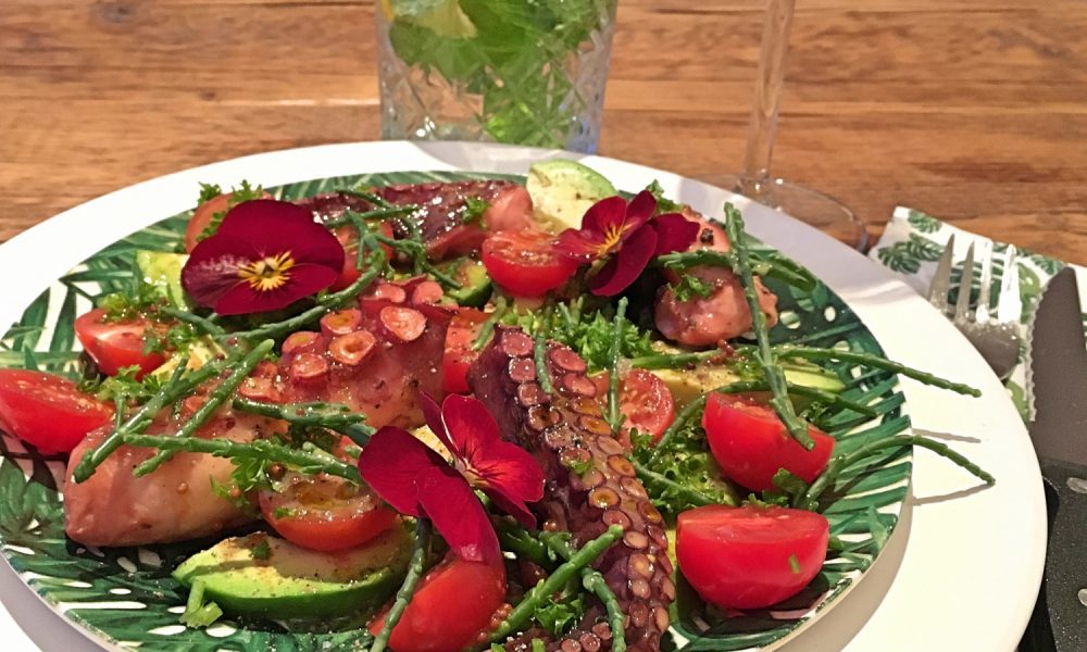 Misschien vind je octopus – deze variant is ook bekend als pulpo, en binnenkort leer ik je hier meer over – wat ‘eng’ om te gebruiken omdat je het nog nooit gedaan hebt. Ik kan je vertellen: er is niks moeilijks aan. Wel is het verstandig om de voorgtgaarde variant te kopen (bijvoorbeeld deze octopusarmen van de appie). Dat scheelt een hoop gedoe, en omdat ze al voorgegaard zijn zullen ze niet zo snel taai worden.