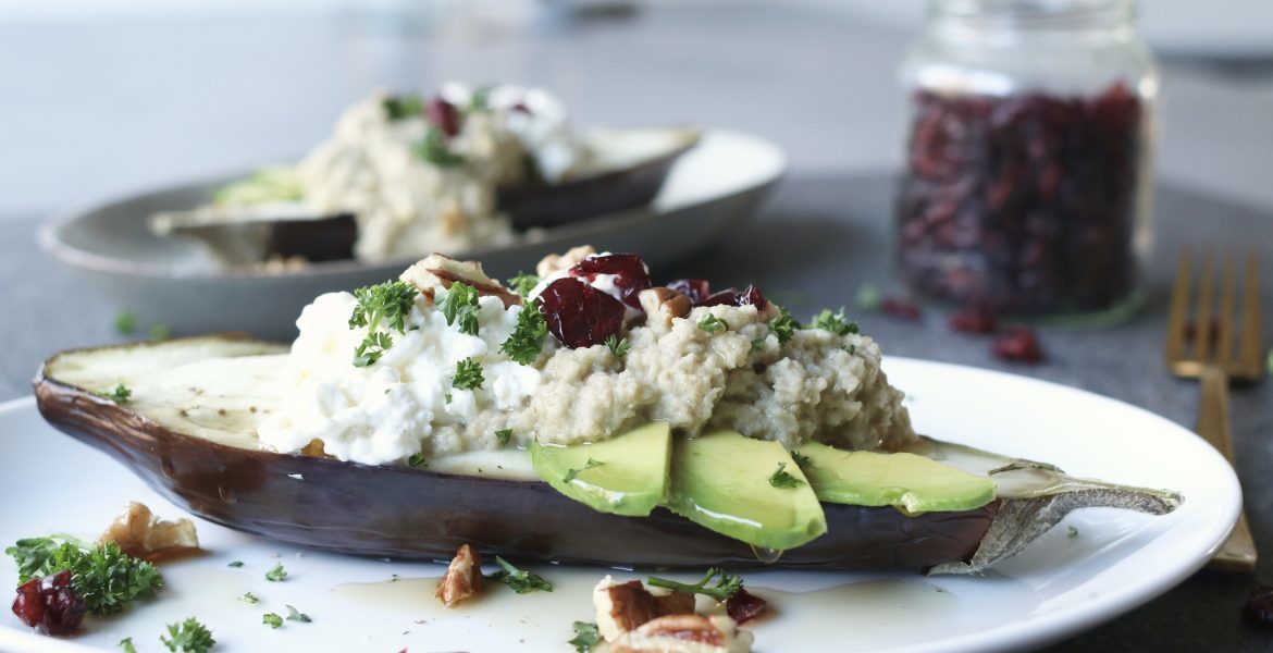 Fan van aubergine? Dan is dit recept echt iets voor jou. Dit gerecht barst namelijk van de aubergine. Je poft ze heel easy in de oven en van de derde aubergine maak je heerlijke baba ganoush. Maak het gerecht af met Hüttenkäse, romige avocado, verse peterselie en je hebt een heerlijke en vegetarische avondmaaltijd!