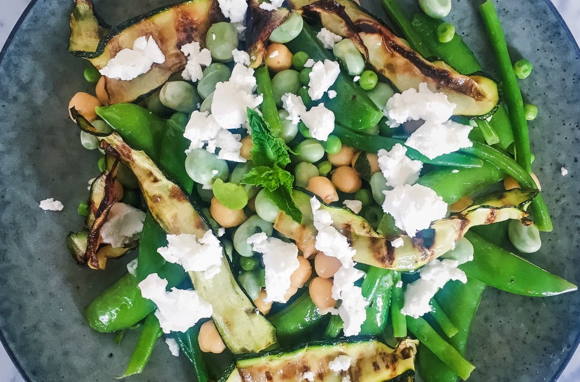 Deze salade heb ik laatst ineens bedacht, omdat ik gigantisch veel bonen in huis had. Bonen zijn goede vullers voor je zomerse salade; we weten inmiddels dat een blaadje sla niet vult en alleen maar vreetbuien in de hand werkt... Na deze salade heb je echt geen eens zin meer in een stuk chocolade en daar worden we toch wel blij van in de zomer toch? Vergeet de munt vooral niet toe te voegen, dat is een hemelse combinatie met boontjes.