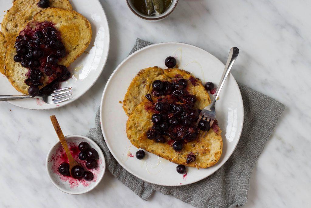 De combinatie van smeuïg en knapperige brood met een vleugje kaneel en een topping van blauwe bessen compote met vanille… wat is dit een heerlijk ontbijtje! Je kunt je bijna niet voorstellen dat het zo makkelijk en snel te maken is. Binnen 5 minuten heb je deze French toast al op je bord liggen.