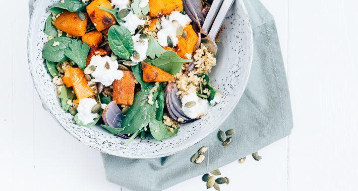 Dat doe ik met geroosterde pompoen die ik wat pit geef door mijn favo specerij chipotle. Kan je geen chipotle vinden dan kan je ook gerookt paprikapoeder gebruiken. Ik maak er een lekkere frisse dressing bij op basis van citroen en een klein beetje komijn. En om het extra fris te maken voeg ik hüttenkäse toe. Zie je wel, best wel lenteproof? Ben je helemaal klaar met de pompoen zo aan het einde van het seizoen, dan zou je dit ook kunnen vervangen voor geroosterde aubergine of zoete aardappel. Eigenlijk is koken gewoon een beetje mixen en matchen. Ik geef jullie inspiratie en dan is het extra leuk om er zelf een creatieve twist aan te geven. Ik ben benieuwd wat je er van vindt.