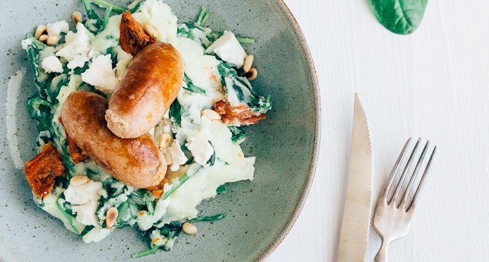 Het belangrijkste bij een goede stamppot is dat je een goede basis hebt. Een lekkere puree dus. Ik houd van een smeuïge puree dus ik ben niet te beroerd om roomboter en melk toe te voegen. Ook het aardappelras doet ertoe. Neem het liefst een kruimige aardappel zoals Bintje, Doré of Eigenheimer. Vroeger aten wij thuis bijna iedere dag aardappelen, vlees en groente. Mijn vader kocht de aardappelen bij een boer in de buurt. In van die grote jutezakken tegelijk. Ik kan me niet anders herinneren dat wij zo’n zak in de schuur hadden staan. Dat bleef ook altijd heel lang goed. Zelf ben ik nu vooral van het gemak en koop ik ze per kilo. Ook omdat ik zo’n grote zak nooit op krijg natuurlijk.