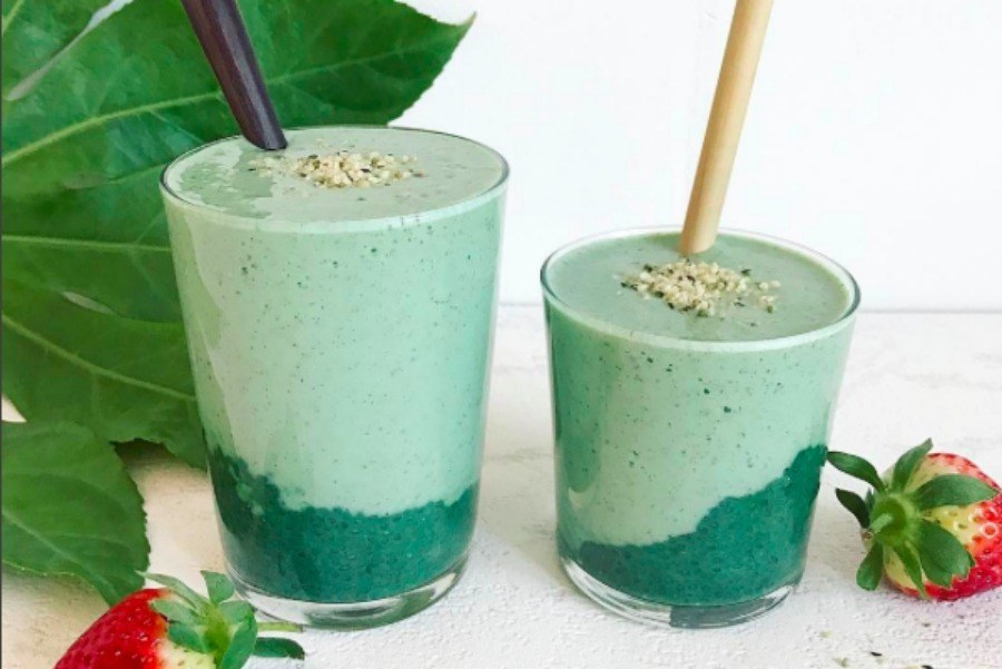Yasssss! Wij mogen weer een top receptje van Daily bowl of happiness met jullie delen! Wat een plaatje is het weer he? Dat kan ze goed! Dit keer is het een heerlijke frisse groene smoothie met twee lagen! Het ziet er niet alleen prachtig uit, maar is ook nog eens een onwijze kickstart van je dag. De smoothie heeft een basis van spirulina chia pudding. Spirulina is een blauwgroene zoutwaterlag en is rijk aan vitaminen, essentiële aminozuren, omega 3-vetzuren, essentiële vetzuren en allerlei mineralen. Daarnaast is het een van de rijkste bronnen van proteïnen. Het eiwitgehalte is ongeveer 60–70%. Een top basis voor een smoothie – dat begrijp je!