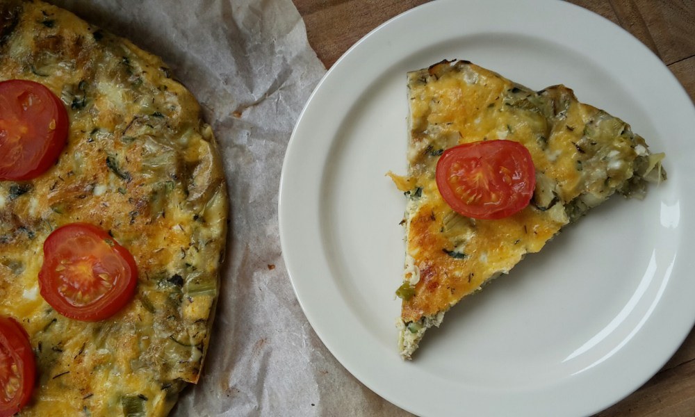 Heb je een keer geen zin om boodschappen te doen? Eieren heb je altijd wel in huis (toch?) en waarschijnlijk ligt er nog wel ergens een ui, wat knoflook en misschien een verdwaalde tomaat en aubergine. Als je dan ook nog wat kruiden in de kast hebt, heb je niet veel meer nodig! Dit receptje heeft een Italiaans tintje door de courgette, tijm en artisjokken, maar wees vooral creatief en doe erin wat jou lekker lijkt. Het kan bijna niet fout gaan =)