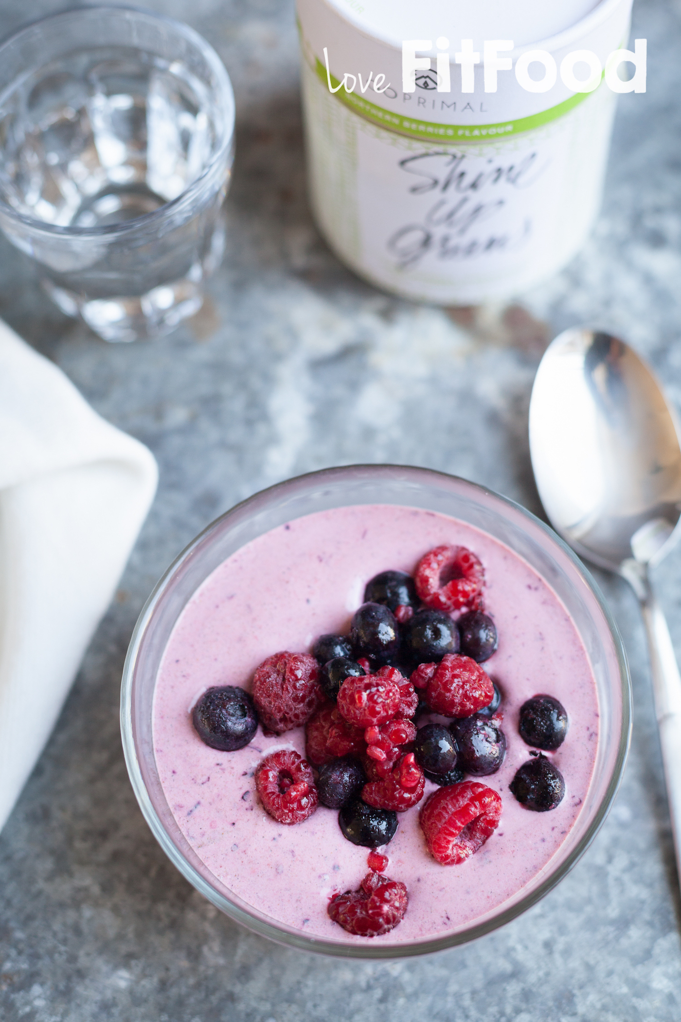 Zoals ik al schreef maak je dit receptje als lekker tussendoortje of als volwaardige maaltijd. Voeg voor dat laatste een handje havermout toe. Of combineer met de kokoswafels van bladzijde 78 uit FitFood Made Easy. Je kan ook magere kwark gebruiken en wat amandelen of cashewnoten toevoegen.