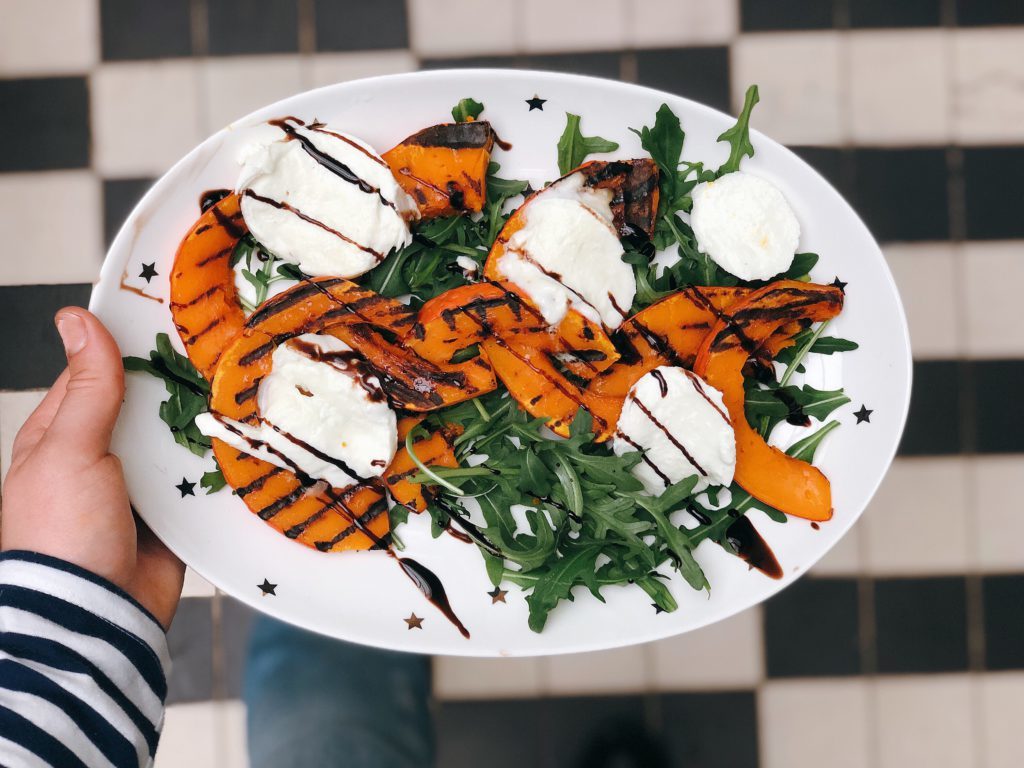 We love burrata! Meestal hoor je mij zeggen: never change a winning team.. Dan heb ik het natuurlijk over de combi met verse tomaten. Maar soms mag je best even een twist hieraan geven. Wij gingen aan de slag met gegrilde pompoen met burrata. De pompoen hebben wij gegrild in het grill-ijzer en dat was heel makkelijk. Binnen no-time was de pompoen lekker zacht. Met de zachte burrata, pittige rucola en zoete balsamico was dit echt een win-win. Wij gebruikte hiervoor de Hokkaid pompoen. Mocht je je nou afvragen: WAT VOOR POMPOEN? Don’t worry. Dat zijn die kleine, ronde pompoenen die je gewoon in de supermarkt vindt. Deze zijn lekker zoet van smaak en dat is top in dit recept. Je kunt natuurlijk ook een flespompoen gebruiken. Lees snel verder voor het recept!