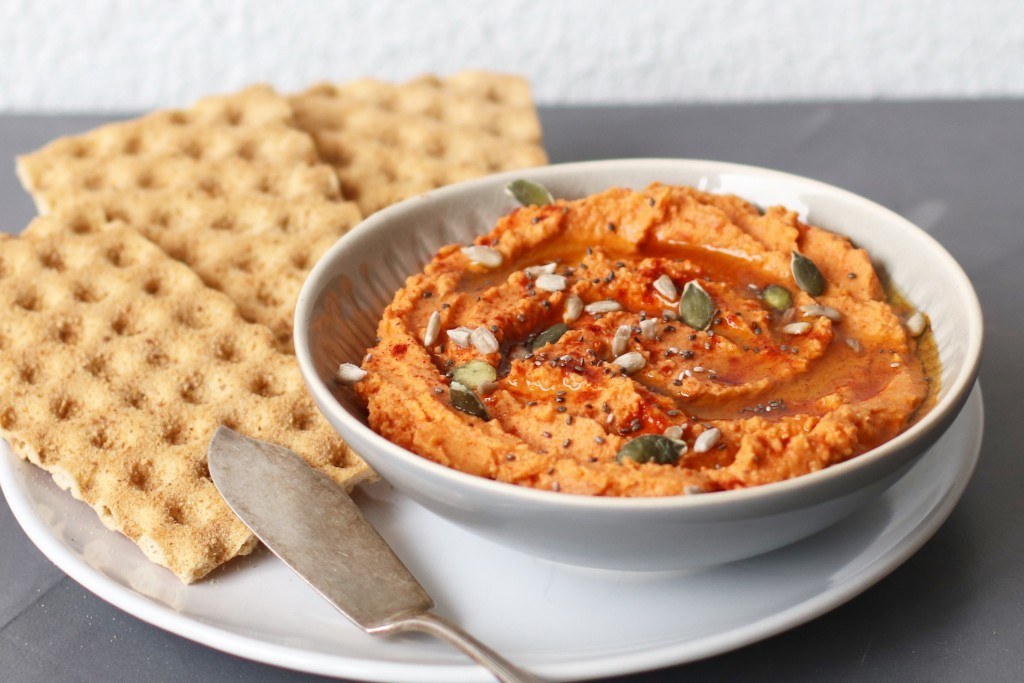 Vandaag heb ik weer een nieuw recept voor jullie voor heerlijke hummus van gegrilde puntpaprika. Ik vind de smaak van puntpaprika altijd net even iets lekkerder dan gewone paprika en samen met kikkererwten en sesampasta maak je er binnen een handomdraai super lekkere hummus van. Hummus is perfect als gezond brood (of cracker) beleg, maar ook als tussendoortje samen met groentesticks als wortel of komkommer.