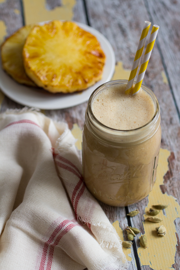 Deze Lassi met gekarameliseerde ananas is een heel ander verhaal. Echt zo'n drankje waar je best eens de moeite voor wilt nemen om het te maken! Op een zomerse middag bijvoorbeeld (niet dat je dan de hele dag in de keuken moet gaan staan hoor) of bij een barbecue.