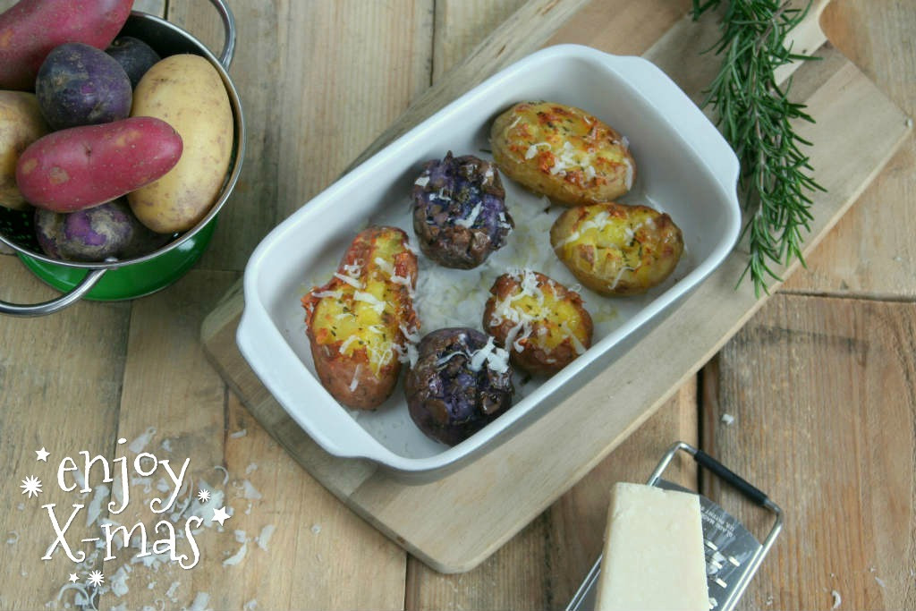 Zo vond ik op Pinterest deze "crush hot potatoes" oftewel aardappelen uit de oven. Met een stamppot stamper druk je een raster in de aardappelen, waardoor ze net even anders uitzien. In mijn dagelijkse leven, besteed ik niet veel tijd aan styling van een gerecht. Met kerst of tijdens een dinertje vind ik dit altijd wel zo leuk om te doen. Het oog wil nu eenmaal ook wat.