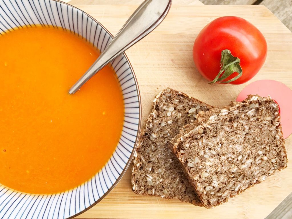 Gerookte tomatensoep… tomatensoep met rooksmaak. Ik weet niet hoe ik dit recept het beste kan noemen. Misschien gewoon ‘easy peasy verrukkelijke soep’. De rooksmaak komt namelijk niet van de tomaten maar van een wondermiddel: gerookt paprikapoeder. Heb je deze nog niet in huis? Drop dan alles ter plekke en zorg dat je het in huis hebt! Ik heb het zelf bij een lokaal buitenlands supermarktje gekocht, maar volgens mij kun je het ook gewoon bij de appie kopen. En als je daar toch bent, neem dan ook de rest van de ingrediënten mee die je nodig hebt voor deze gerookte tomatensoep.