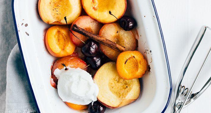 Is het nou geen lekker weer? Dan maak je dit geroosterd steenfruit ook heel gemakkelijk in de oven klaar. No worries dus, je hebt altijd een alternatief. Voor als het ineens gaat stortregenen. Steenfruit is nu helemaal in het seizoen. Maak er dus goed gebruik van, want voor je het weet is het weer uit de schappen verdwenen. En, wanneer staat jouw volgende bbq gepland?