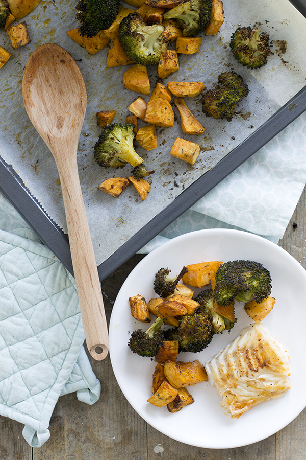 Wij zijn gek op broccoli maar moet zeggen dat we het meestal koken. Dit experiment uit de oven was een fijne afwisseling. Dit kruidenmengsel moet je echt een proberen, het maakt de zoete aardappel extra lekker en de broccoli heeft zo ook veel meer smaak dan je gewend bent.
