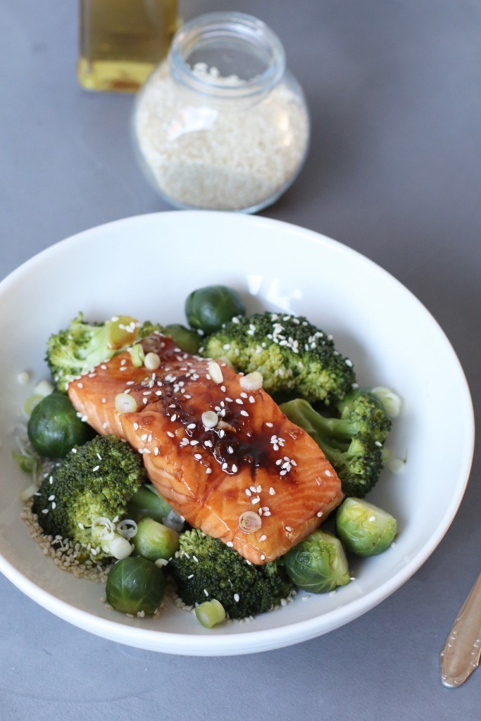 Ik krijg vaak de vraag ‘mag ik dan geen lekkere sausjes meer als ik gezonder wil eten?’. Jawel hoor! Maar GEEN kant en klare sauzen lieve mensen. Die zitten vol troep. Ik ben zelf gek op sausjes maar ik maak deze vrijwel altijd zelf. Teriyaki saus hoeft namelijk helemaal niet slecht voor je te zijn als je hem zelf maakt met sojasaus, honing en een teentje knoflook. Sterker nog, knoflook is juist hartstikke gezond. Laat de zalmfilet even marineren in de teriyaki saus, serveer er gestoomde groenten als broccoli en spruitjes bij en je hebt binnen no time een heerlijke en gezond maaltijd op tafel.