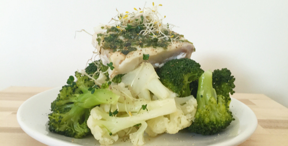 In dit gerecht stoom ik zowel de vis als de groenten boven bouillon. Dit geeft net wat meer smaak.