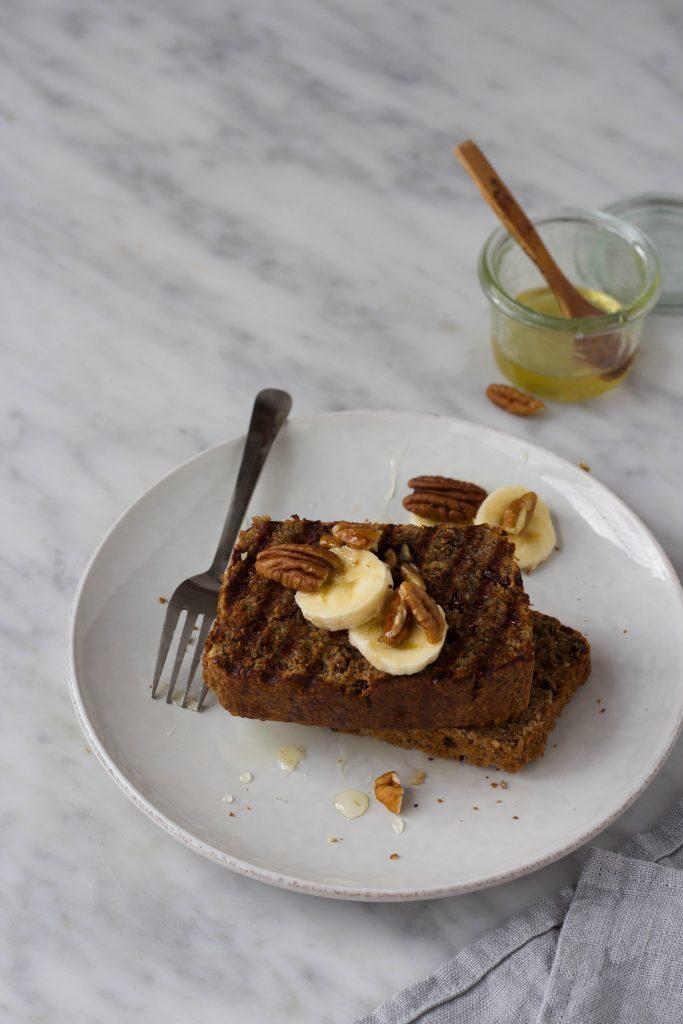 Een dikke warme plak knapperig bananenbrood! Heerlijk nu de ochtenden weer donker en kouder worden.