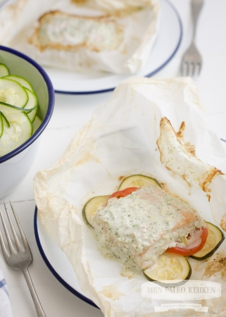 Geurige zalmpakketjes uit de oven met kokos en courgette