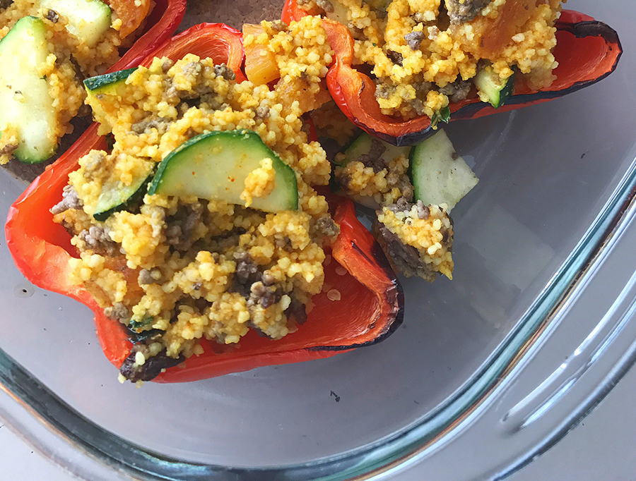 Tijd voor een lekker zomers receptje: gevulde paprika met couscous! Ik ben gek op gevulde paprika’s en meestal maak ik ze op Mexicaanse wijze, met rijst en bonen, maar dit keer pak ik het anders aan. Ik vul ze nu met Marokkaanse couscous en ik maak er een heerlijke frisse dip bij. Natuurlijk mag munt niet ontbreken in dit recept en een ander ingrediënt wat helemaal past bij het lekkere weer: abrikozen.