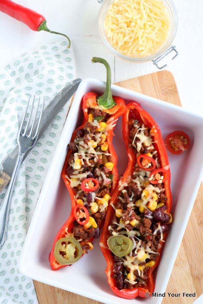 Hmmm, dit zijn een beetje rare dagen. Aan de ene kant is het nieuwe jaar wel echt begonnen. Maar aan de andere kant hebben de meiden nog vakantie en rommelen we echt maar wat aan. Ik probeer wat dingen op te ruimen, langzaam aan verhuisdozen in te pakken en natuurlijk leuke dingen te doen met de dames. Waar ik wel echt weer behoefte aan heb na al dat feestgeweld van de afgelopen weken, is weer een beetje normaal doen qua eten. Daarom schoof ik deze gevulde paprika met Mexicaans gehakt de oven in. Even geen borrelhapjes als avondeten maar weer een keer wat vitamientjes in the pocket…