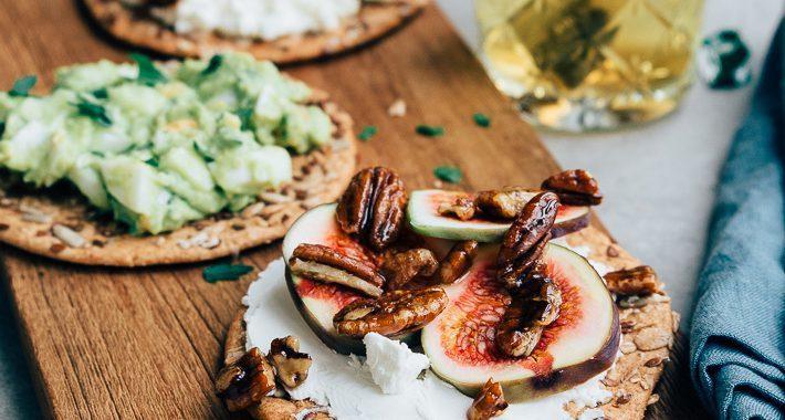 3 x gezond beleg Qua beleg heb ik 3 toppings gemaakt, mijn favoriet is de avocado- eisalade. Dit is zo gemaakt en zo lekker! Heb je zin in iets fris dan is de topping met Hüttenkase en gegrilde ananas een aanrader en voor de zoetekauwen onder ons raad ik de geitenkaas met vijgen en gecarameliseerde honing pecannoten aan. Yum!