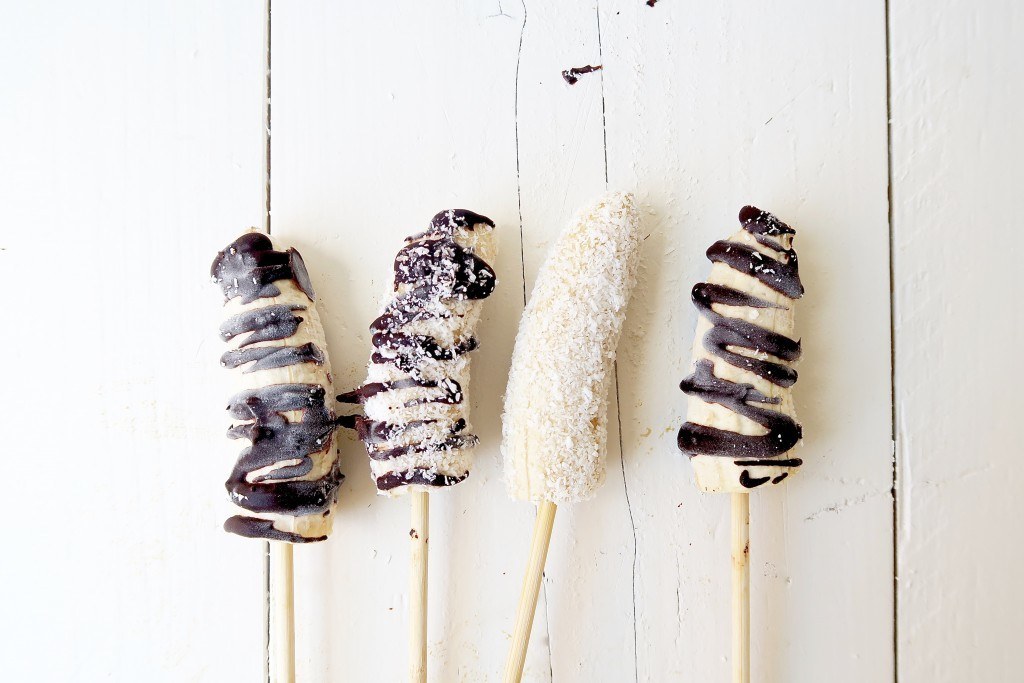 Vroeger was ik ontzettend gek op die kleine Danoontjes waar je een stokje in kon steken – verkopen ze die nog? – en die je vervolgens in de vriezer zette zodat het ijsjes konden worden. Héérlijk vond ik ze. Ik ben gek op ijs maar toen ik een paar jaar geleden het gezonde pad insloeg paste ijs daar niet meer bij. Ik ben zo iemand die het niet bij een paar happen kan houden dus ik koop het eigenlijk ook nooit meer. Wel af en toe een schepijsje trouwens, met twee bolletjes ofcourse. De foodfestival bezoekers onder jullie zullen de nieuwste trend al wel gespot hebben – voor een ietwat belachelijk hoge prijs -, namelijk gezonde bananen ijsjes. Ik snap dat je niet voor een dubbeltje met je foodtruck op een festival terrein mag staan, maar vier euro en vijftig cent voor een halve banaan op een stokje?! That’s a lot. Gelukkig kunnen we dat thuis een stuk goedkoper.