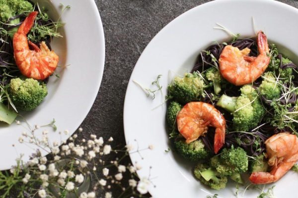 Zwarte rijstnoedels met knoflook scampi’s 25 augustus 2018