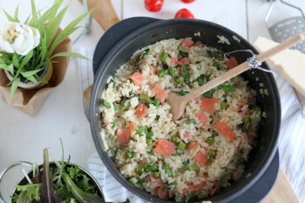 Risotto uit de oven met groene asperges en zalm 20 maart 2018