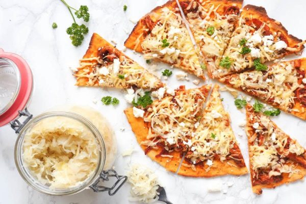 Zoete aardappelpizza met zuurkool en pulled chicken 19 maart 2018