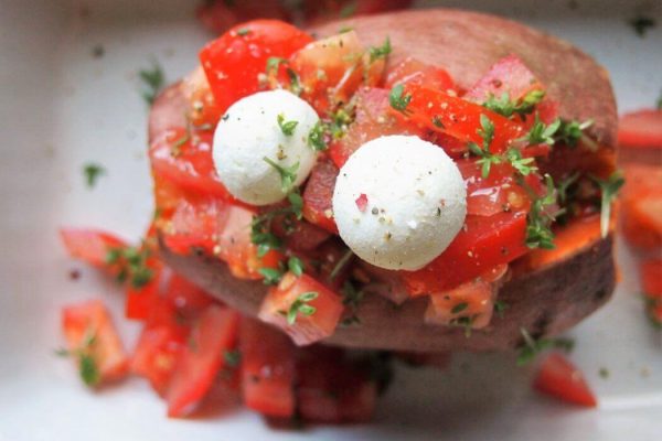 Recept: Gevulde Zoete Aardappel Met Tomaat, Geitenkaas En Tuinkers 06 maart 2018