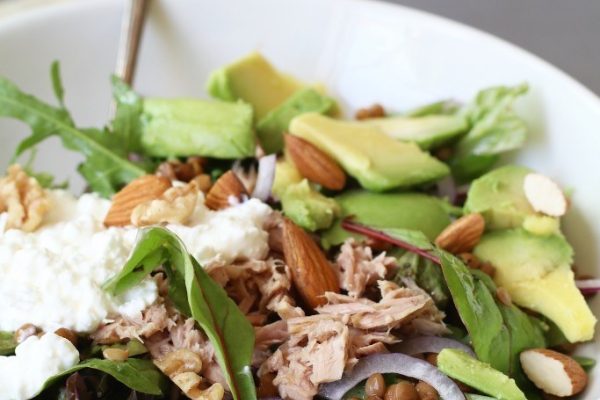 Linzensalade met avocado, hüttenkäse en tonijn 01 augustus 2017