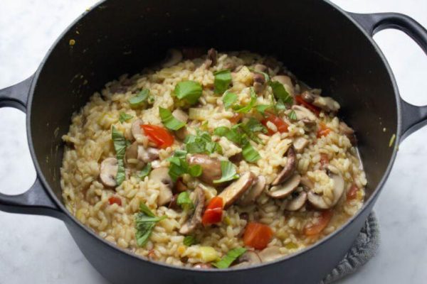 Vegan risotto met spinazie en champignons 24 juli 2017