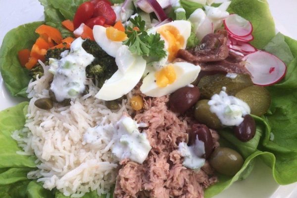 Nicoise salade met Tilda pure bamati rijst met een mierikswortel dressing 02 mei 2017