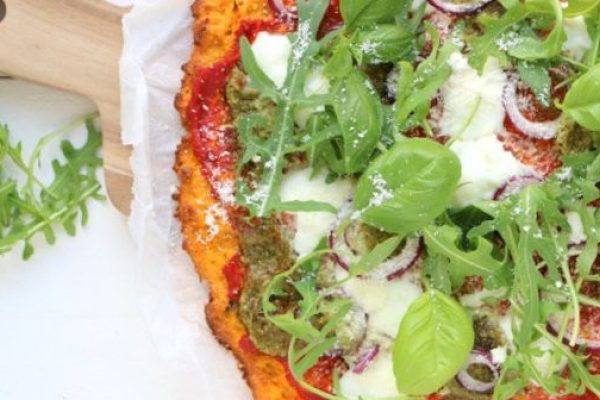 Zoete aardappelpizza met groene pesto en mozzarella 28 april 2017