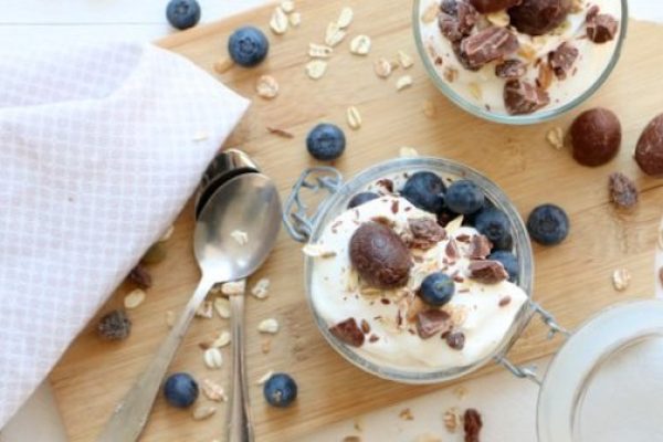 Ontbijt tiramisu met muesli, blauwe bessen en paaseitjes 15 april 2017