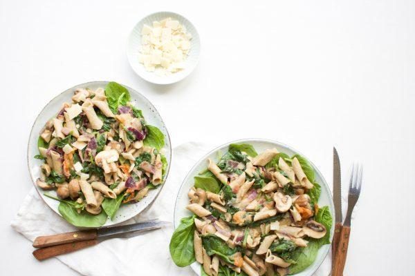 Makkelijke pasta met spinazie, champignons en tomaatjes 10 april 2017