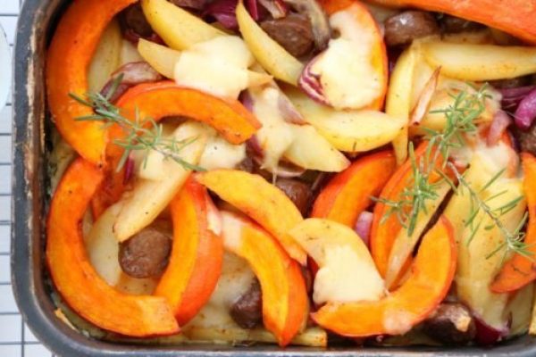 Ovenschotel met pompoen, aardappel en worst 19 januari 2017