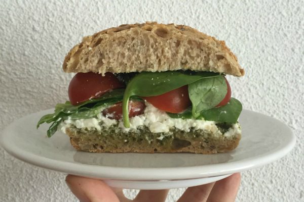 Broodje hüttenkäse, tomaat & pesto #lessismore recept 07 januari 2017